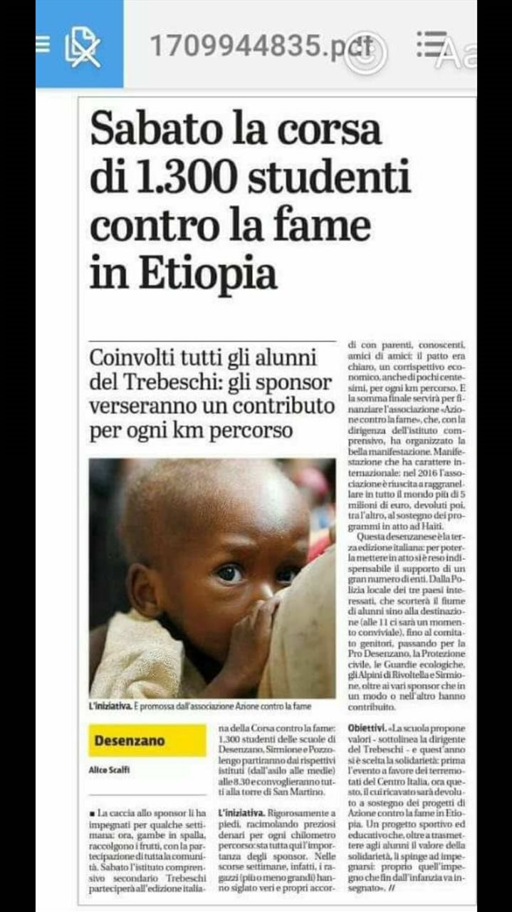 Il 20/05/2017 si terrà la terza edizione italiana della corsa contro la fame, l’evento di azione contro la fame è rivolto ai ragazzi delle scuole, la caratteristica principale dell’iniziativa è il ruolo assegnato agli alunni delle scuole partecipanti, a cui non viene chiesa una semplice donazione ma un coinvolgimento attivo nell’essere parte della soluzione ad un problema.